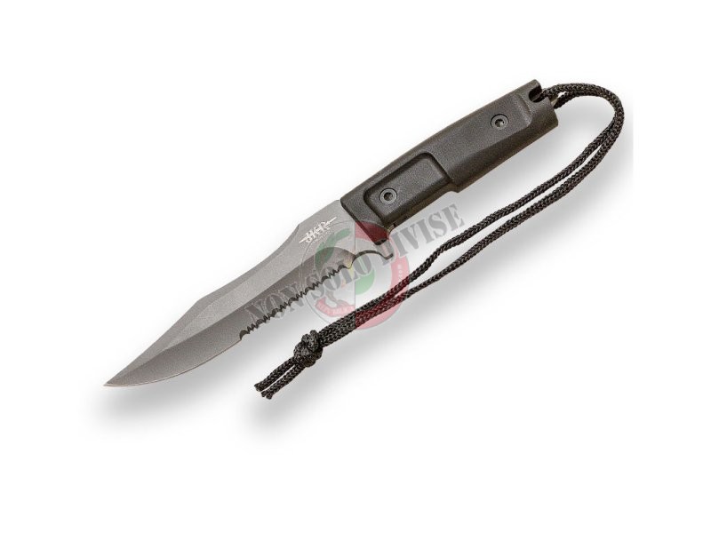 Coltello de sopravvivenza Joker JKR0784. Lama de 16 cm de acciaio inox con rivestimento in titanio e sega. Impugnatura antiscivolo di gomma.