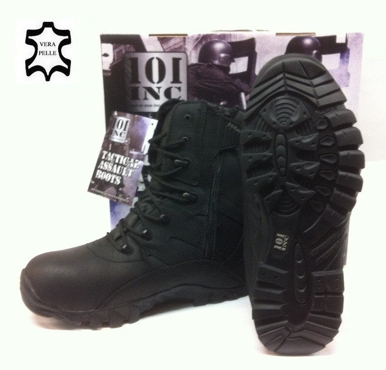 - Anfibi Stivaletto Stivale Scarponcino Neri Pelle Cordura Tactical Boots Recon 101 INC Militare Esercito Marina Parà Soft Air Caccia Art. 231175