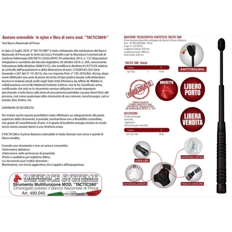 Il TACTIC580 è il primo Bastone estensibile in Italia ritenuto non arma e quindi di libera vendita.