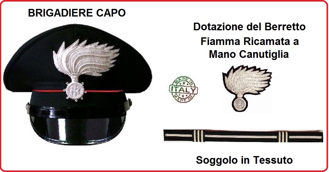 Berretto Ordinanza CC Carabinieri Brigadiere Capo con Fregio Ricamato Soggolo Tessuto Diadema VENDITA RISERVATA Art.BER-CC-4
