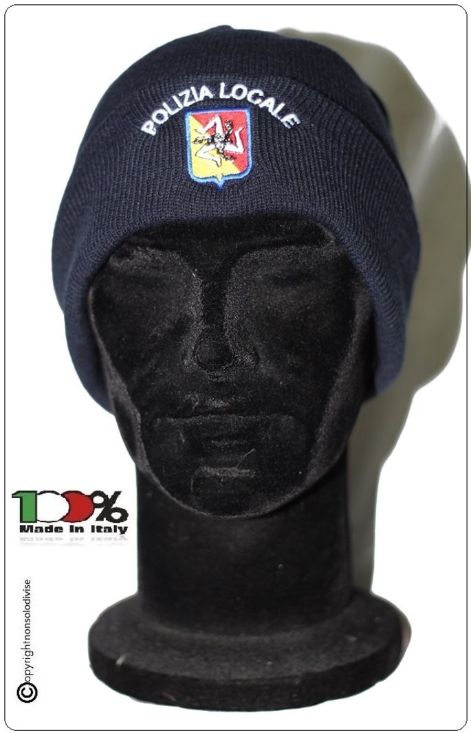 - Berretto Zuccotto Papalina Watch Cap Invernale Blu Nevy OD con Ricamo POLIZIA LOCALE SICILIA Art.TUS-SI