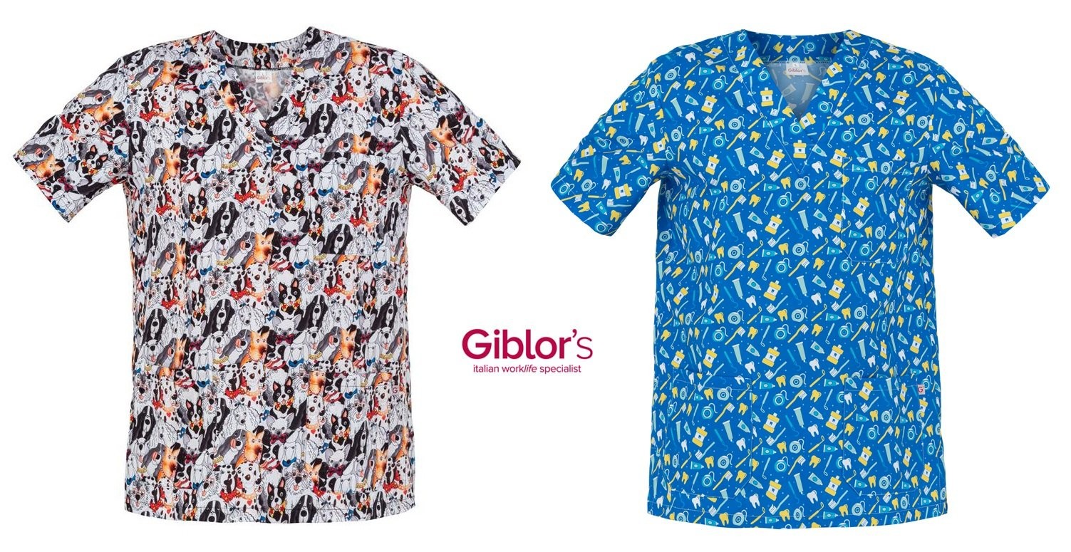 - Casacca Piero Fantasia Cani Casacca Collo a V No Stiro Microfibra Superleggera Veterinario Dentistica Giblor's Art. 23P03K1330