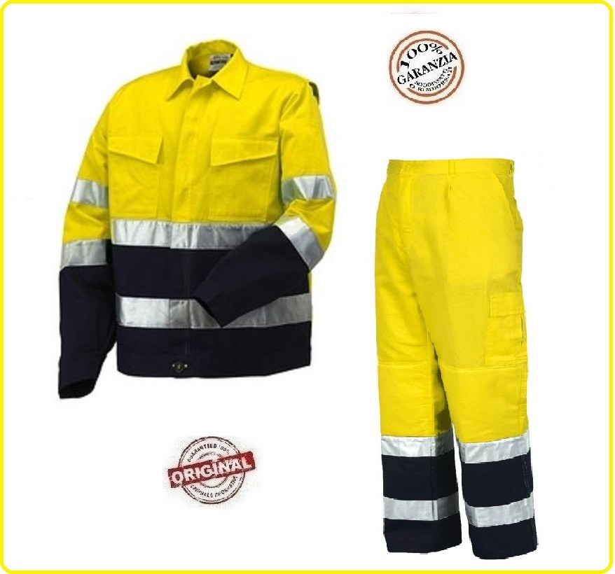 Completo Giubbino + Pantaloni Alta Visibilità AV Bicolor Protezione Civile Soccorso Emergenza Certificato Starter Art. 8445-8430N