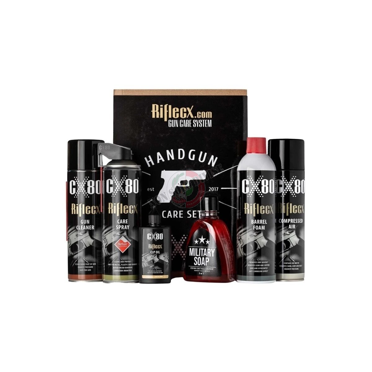 Completo Professionale per la Pulizia di Pistole CX80 HANDGUN CARE SET Riflecx Art. CX80-HA