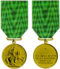 L. 7 maggio 1954, n. 203 (modificata dalla L. 8 novembre 1956, n. 1327), che attribuisce il nuovo nome alla "Medaglia Mauriziana pel Merito Militare di dieci lustri", istituita con Regie Magistrali Patenti in data 19 luglio 1839.