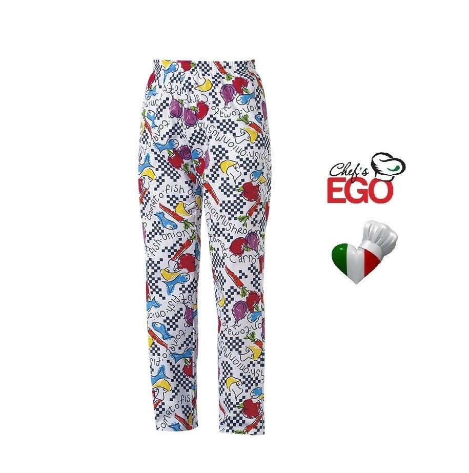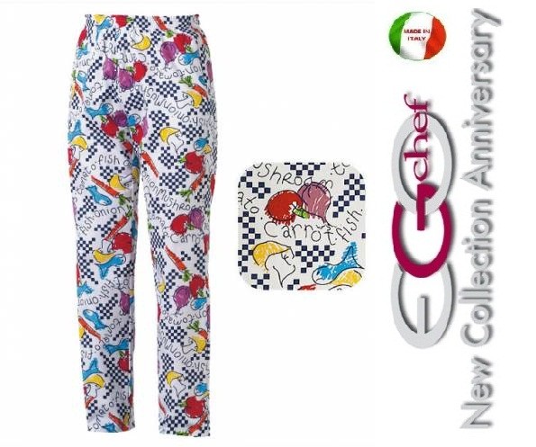 - Pantalone Pantaloni Pants Hose Coulisse Cuoco Chef Professionale Ego Chef Italia Fantasy Art. 3502102A