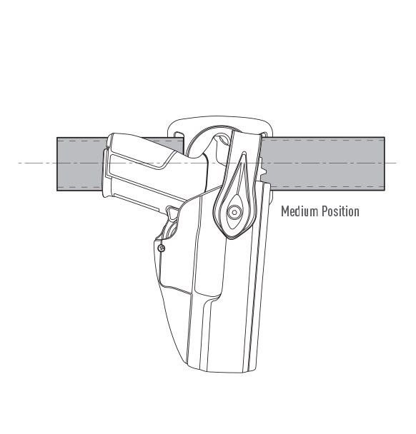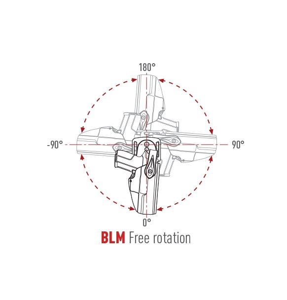 Inoltre può essere montato sulla fondina secondo un modulo a tre punti, integrato e reso personalizzato con una vasta gamma di spessori e piastre distanziali, per permettere la personalizzazione per angolo d’inclinazione, per altezza e per distanza dal corpo dell’operatore.