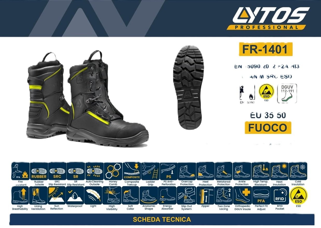 Stivale Professionale Certificato VIGILI DEL FUOCO Protezione Civile Soccorso Sanitario LYTOS Art. FR1401