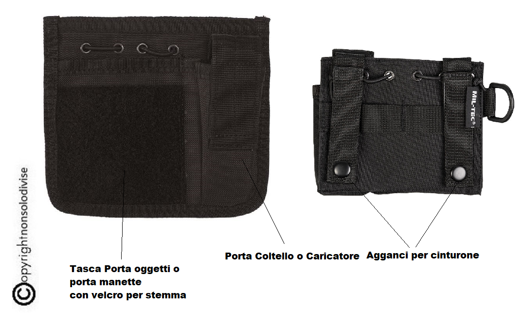 - Tasca Porta Oggetti ADMIN con Screech MILTEC colore Nero da Cinturone M.O.L.L.E. GPG IPS VIGILANZA Art. 13486002