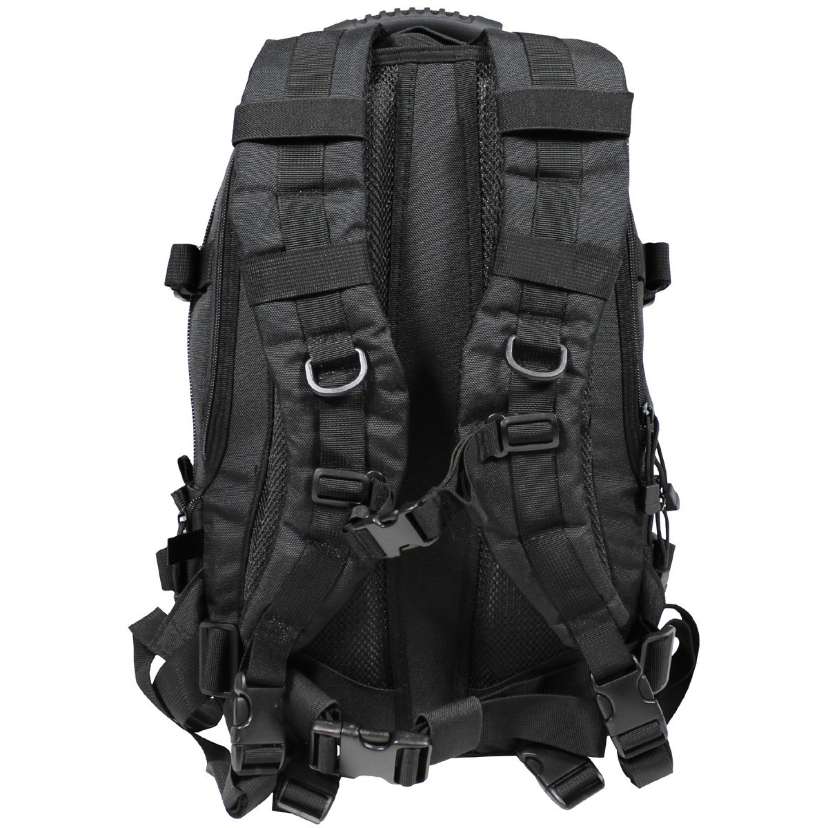 Zaino militare realizzato in poliestere antistrappo fibra 900D con cinghie, spallaci imbottiti e regolabili. Cintura pettorale regolabile, schienale imbottito e dotato di pratica maniglia per il trasporto. Scoparto imbottito nella parte schienale per sacca idrica "Camel-Bag" o piccoli dispositivi elettronici (computer, tablet, ...). Zaino dotato di varie tasche, grandi e piccole, con cerniera o con chiusura a velcro. Sistema MOLLE sui lati. Capacità 40 L Dimensioni: ca. 45x28x30 cm. Peso: circa. 1,3 kg. Materiale: 100% Poliestere 900 D. - See more at: http://armymoda.it/zaino-aktion-40-litri-nero.html#sthash.5WXgIj6P.dpuf